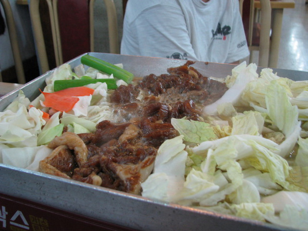 又到晚飯時間 濕燒豬肉+石頭鍋飯
