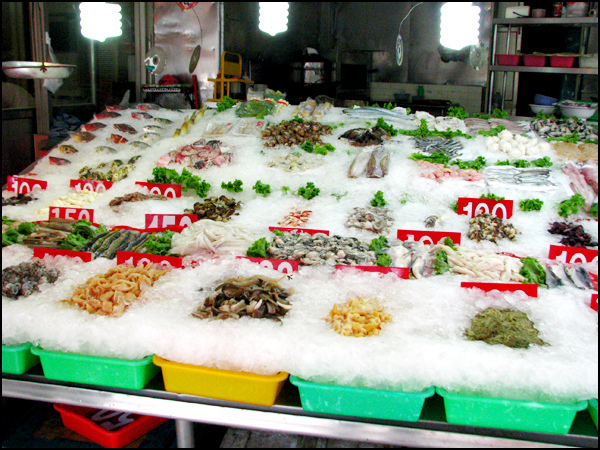 一整條街都是海鮮店,就隨便選一家進去