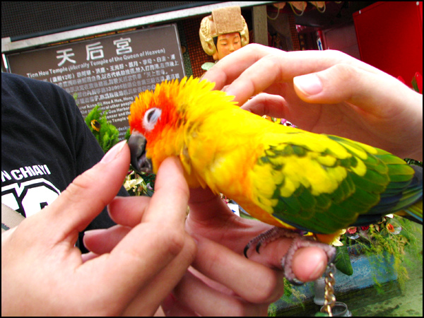 兩位很爽快的就答應了,我們就盡情地調戲那隻鸚鵡