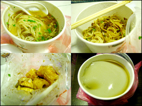 回去之前,再打包擔仔麵(一碗乾麵一碗湯麵還附送一包滷味)跟豆花回去